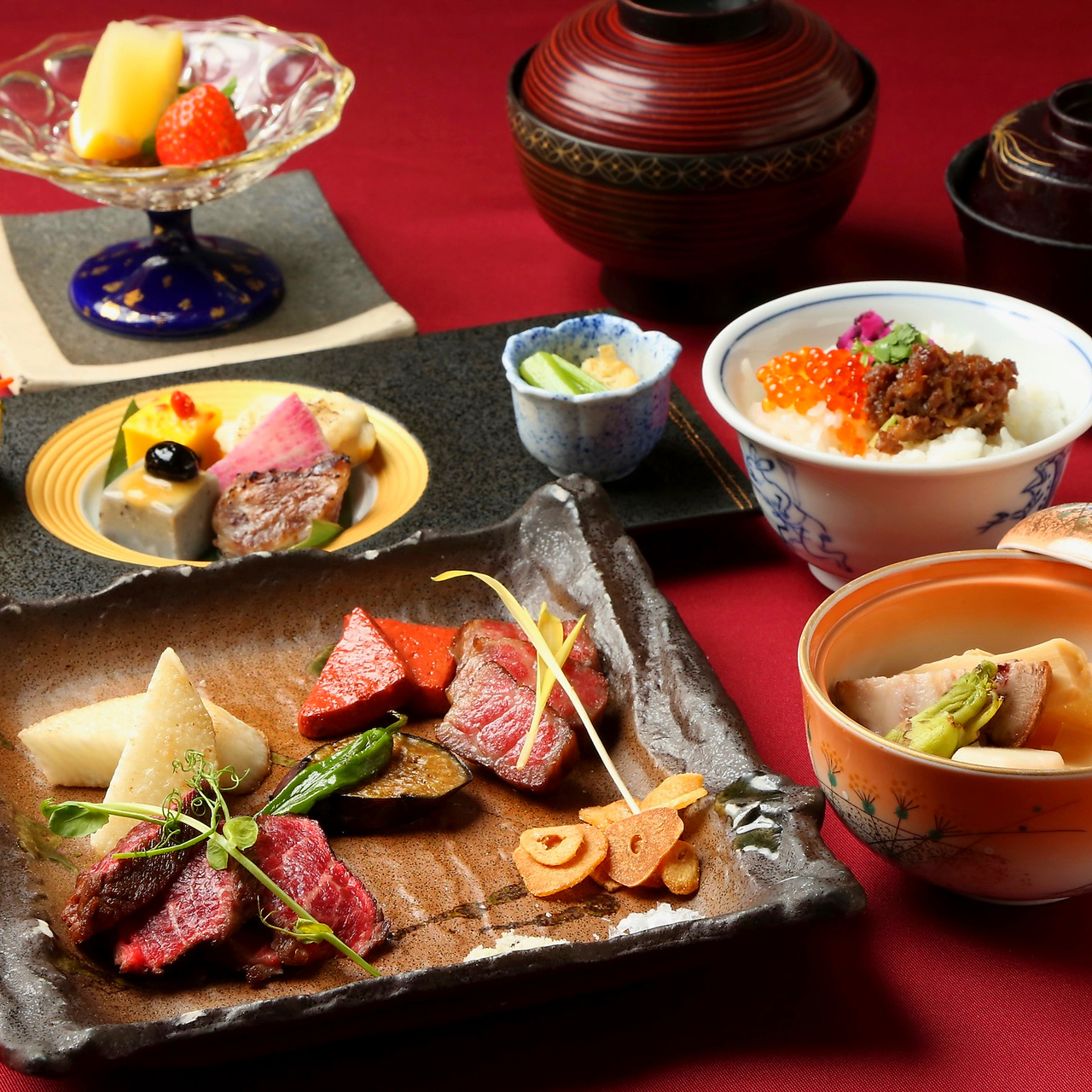 「尾崎牛の厳選ステーキ」をメインに、旬の食材と尾崎牛をふんだんに使用した割烹料理をご賞味頂けます。