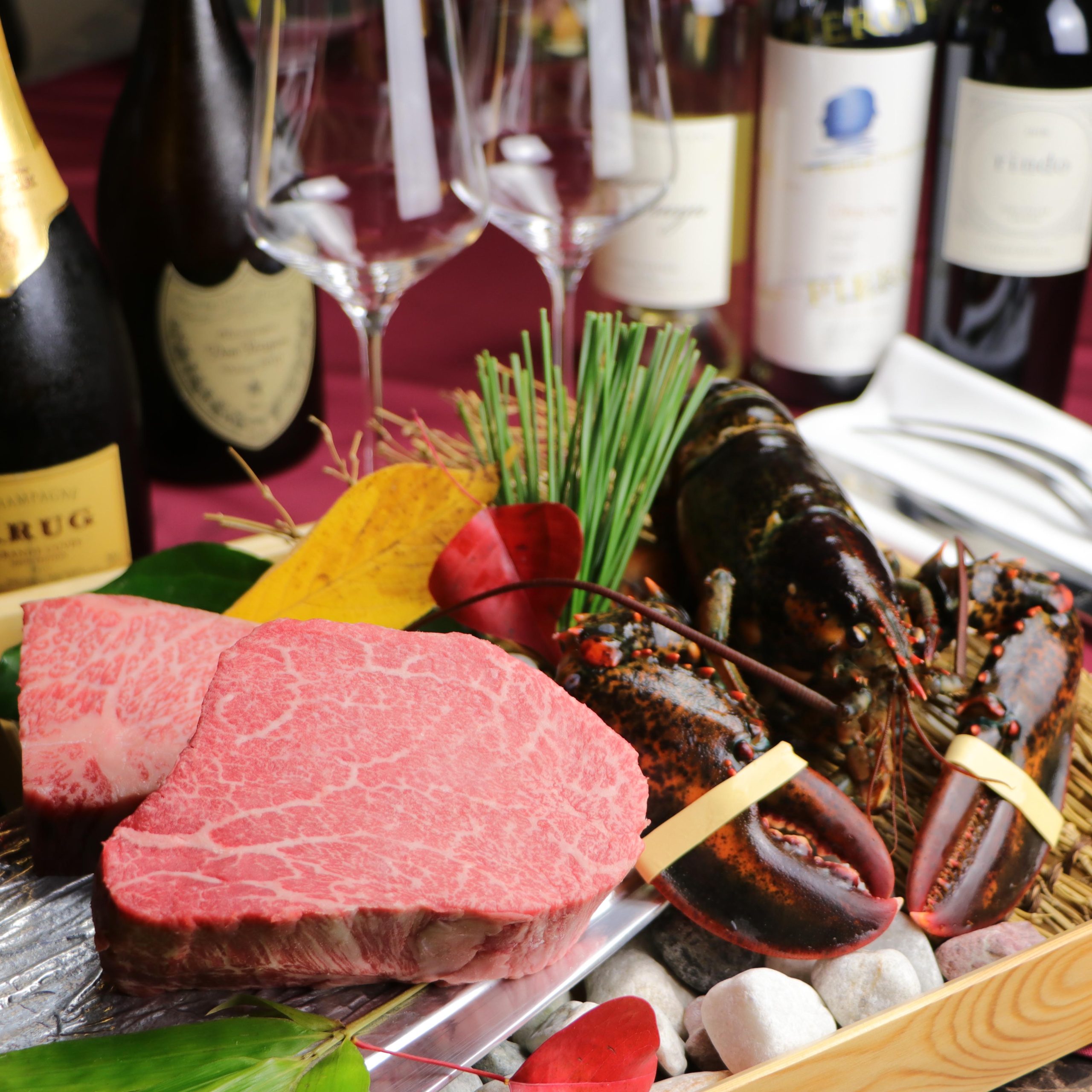 予約限定【個室肉割烹・百合コース】尾崎牛サーロインステーキと特選海鮮の至高鉄板肉懐石コース◆22,000円