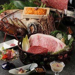 極上尾崎牛サーロインと活けオマール・活け黒アワビの鉄板焼きをメインに、入手困難な希少なブランド牛である尾崎牛と豪華海鮮を満喫できるコースとなっております。サーロインは+3000円でフィレ肉に変更することも可能です。